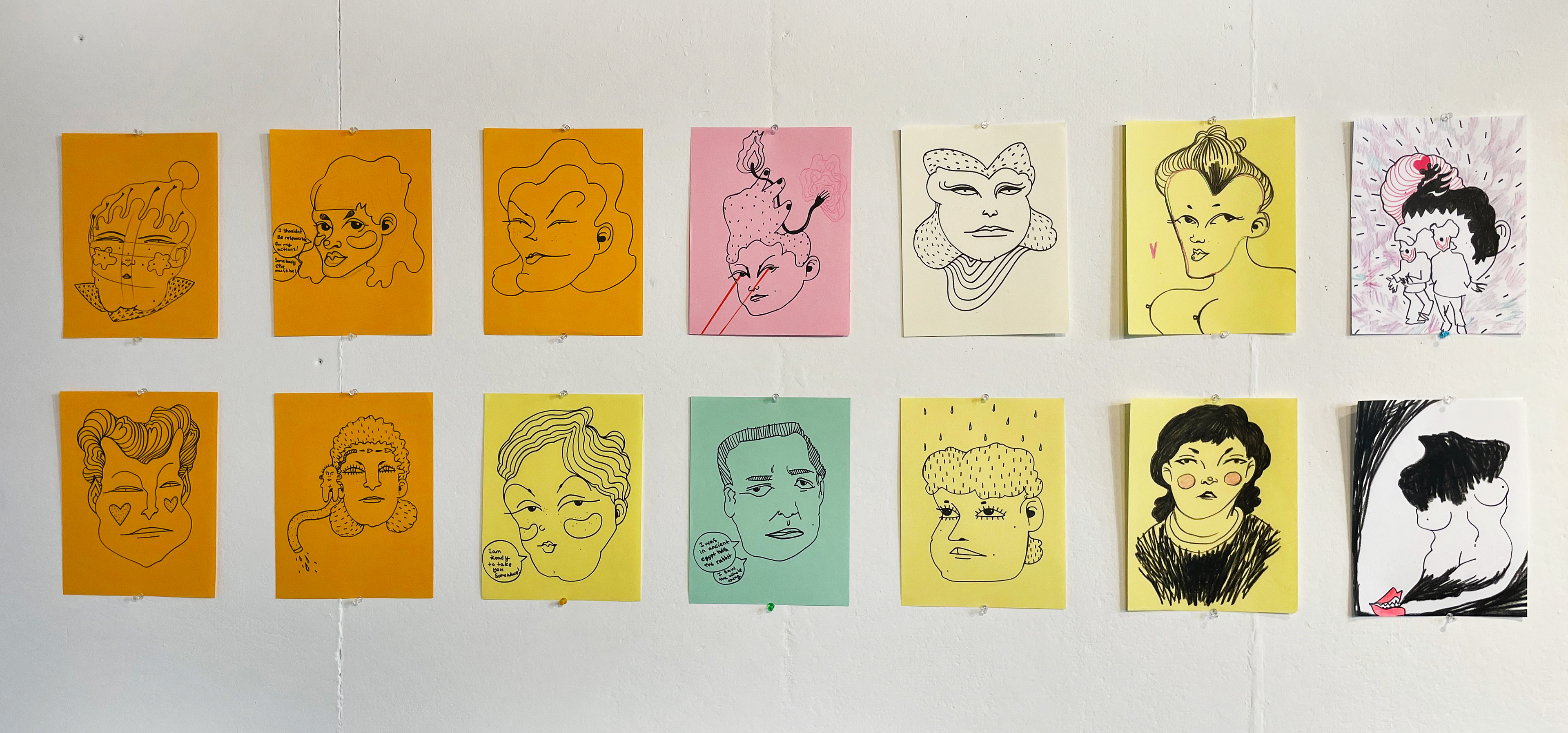 This body of character design work has been presented in gallery and critique-based environments, where process and interpretation are central. The characters emerge through intuitive drawing, abstraction, and material exploration, functioning as vessels for emotion, narrative, and psychological states.